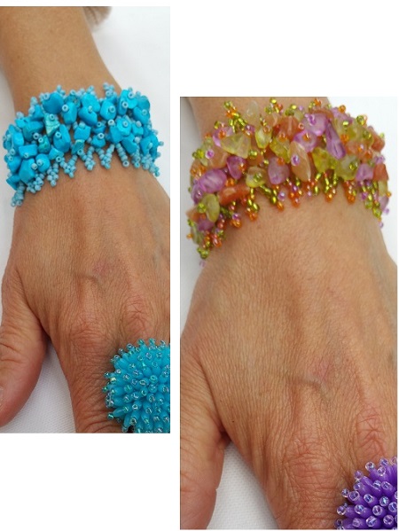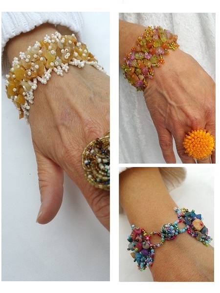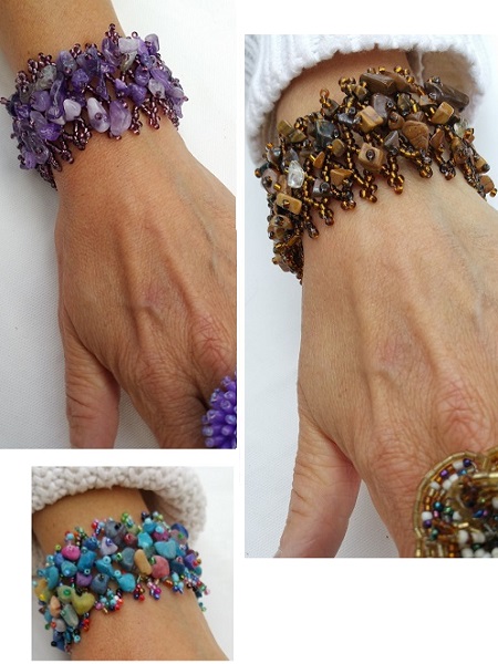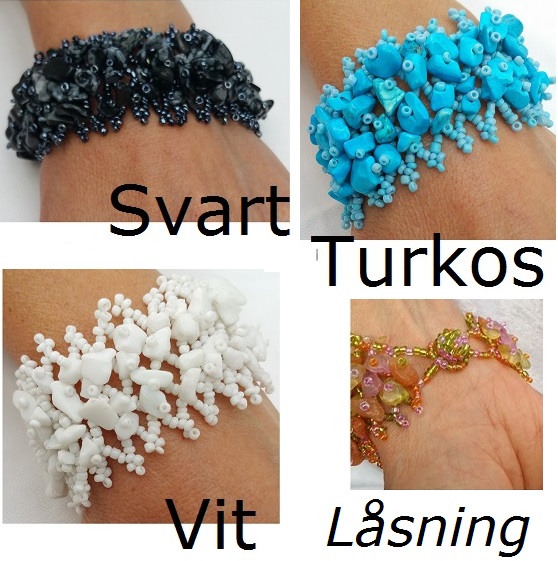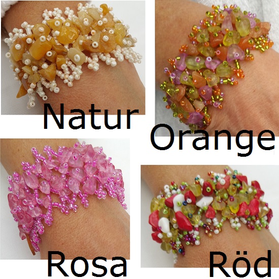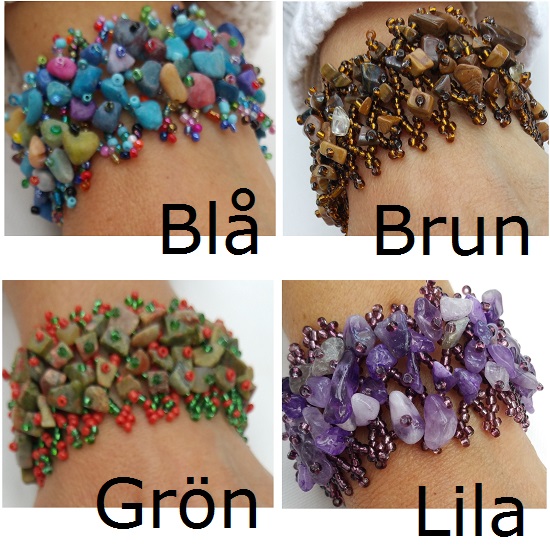 Snyggt vackert armband med massor av trädda pärlor på ett flätmönster. De större pärlorna är av lättare material av sten som kommer från Bali, Balistone. Flera olika färgkombinationer. Lagom stor modell som passar alla.