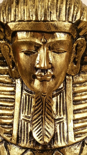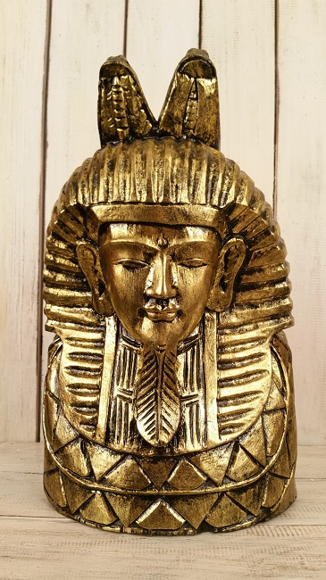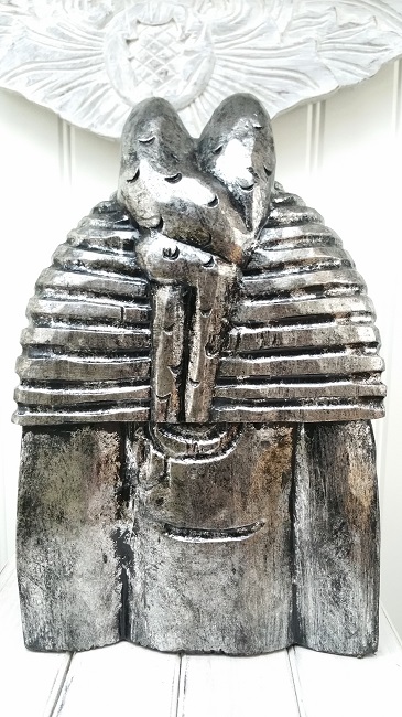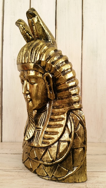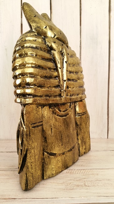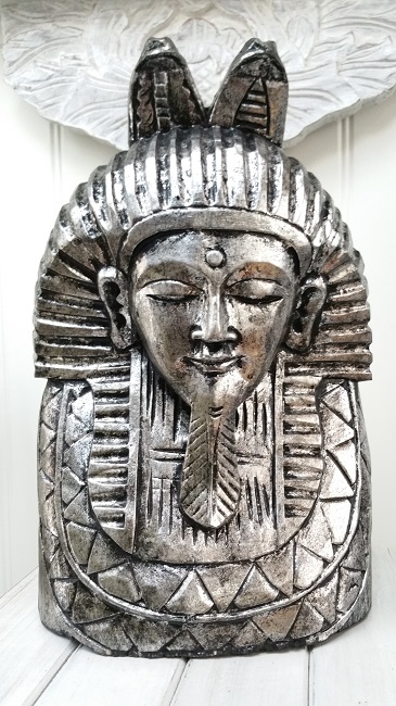 Faraon. Träskulptur/ staty. Välgjord och gedigen. Målad i guld eller silverfärg med svart kontur.