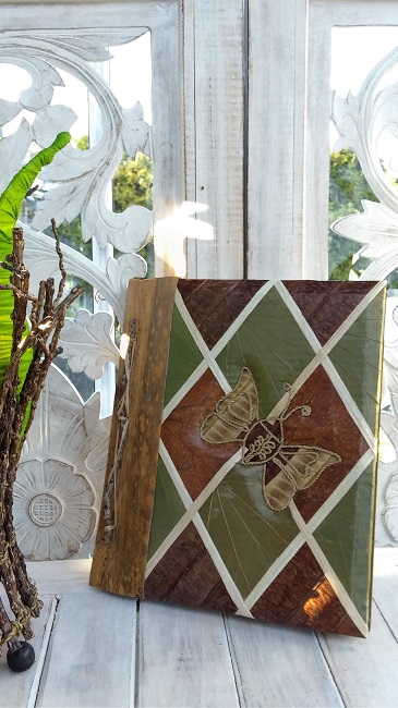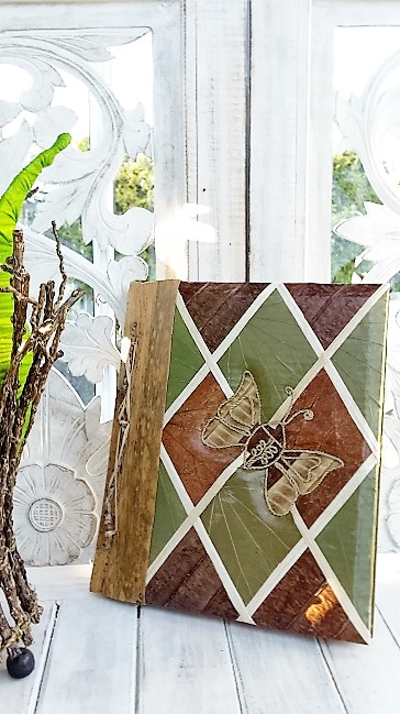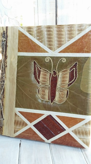 Dekorativt fotoalbum gjort för hand i olika naturmaterial.