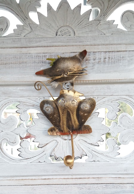 Djur i metall med användning som hängare/ krok. Dekorativt och vackert utformat i smide - plåt. Kroken är kraftig i konstruktionen och tål hög belastning.