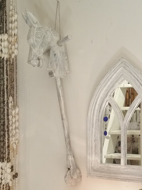 Käpphäst med hjul. Antik shabby chic design.Vi har åter fått in några av dessa i lager!