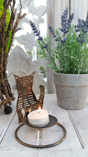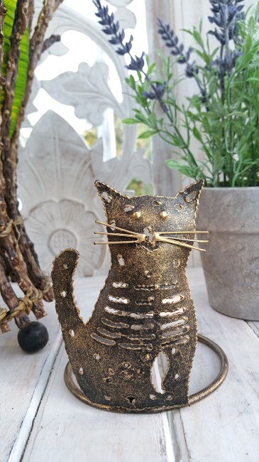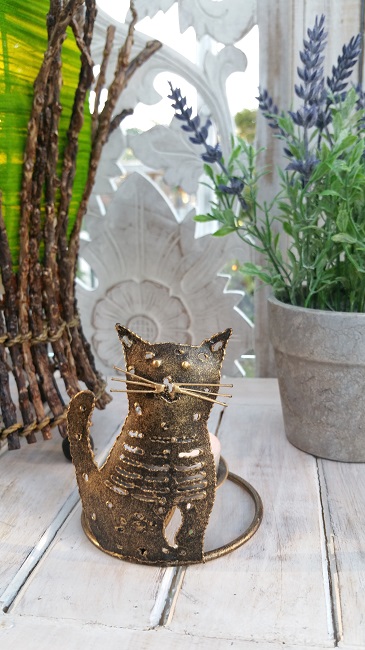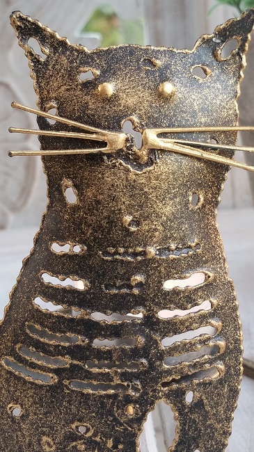 Katt i metall. Handgjord liten katt i smide, ljushållare.
