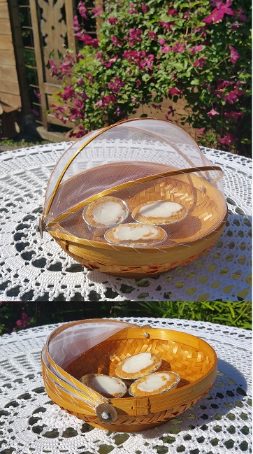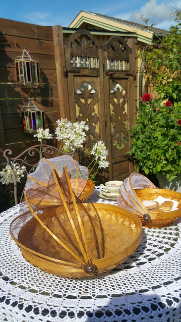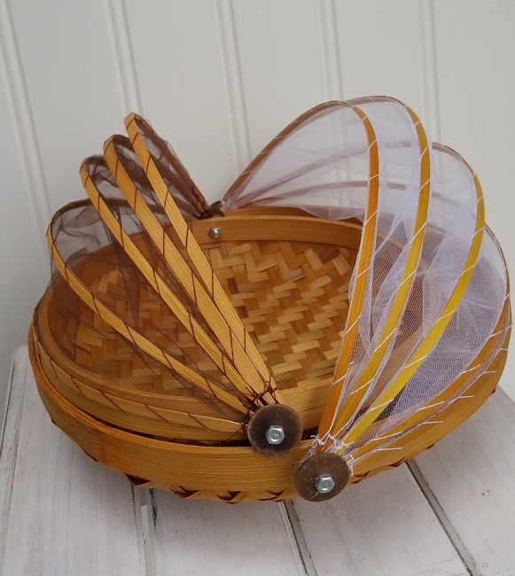 Brödfat, korg för olika användningsområden. Praktiskt nät som stänger ute getingar och annat från det som förvaras i korgen.