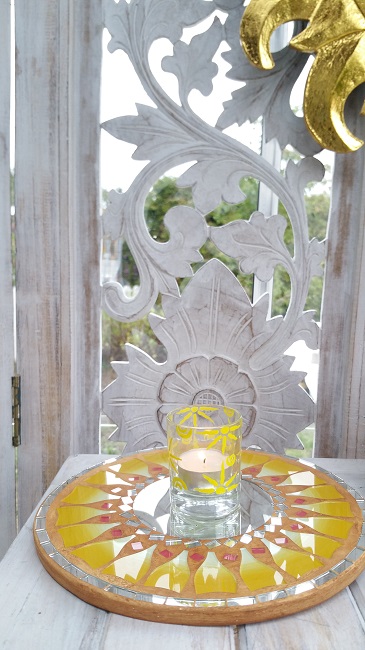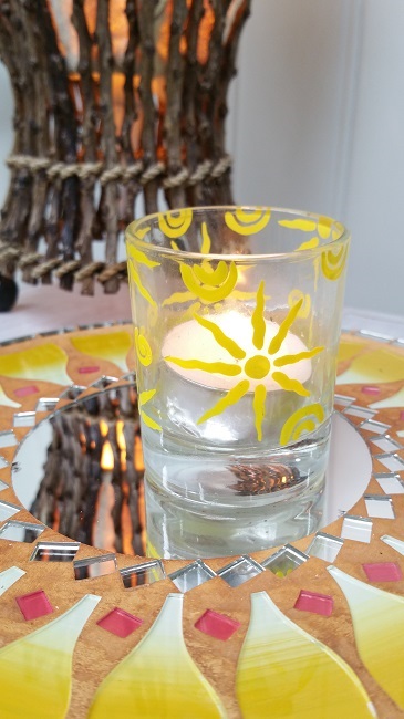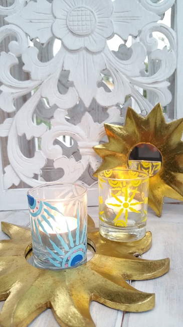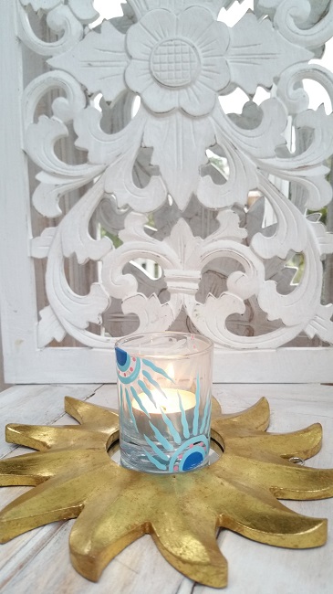 Glaslykta gjord för att ha ett värmeljus i. Vackert handmålade.