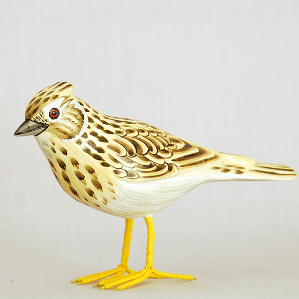 Sånglärka. Handgjord i trä. Ca 18 cm lång. 13 cm hög.
