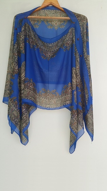 Denna tunnare tunika i chiffong kan bäras på flera sätt. Se bilder på 2 sätt att bära den, över en topp eller bikini. Passar lika bra till festliga tillfällen som på beachen en solig dag. Den kan dessutom göras till en snygg scarfes (se bild på modellen i Vit/Brun) eller knytas upp så det mer liknar en blus.