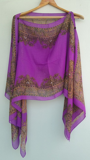 Denna tunnare tunika i chiffong kan bäras på flera sätt. Se bilder på 2 sätt att bära den, över en topp eller bikini. Passar lika bra till festliga tillfällen som på beachen en solig dag. Den kan dessutom göras till en snygg scarfes (se bild på modellen i Vit/Brun) eller knytas upp så det mer liknar en blus.